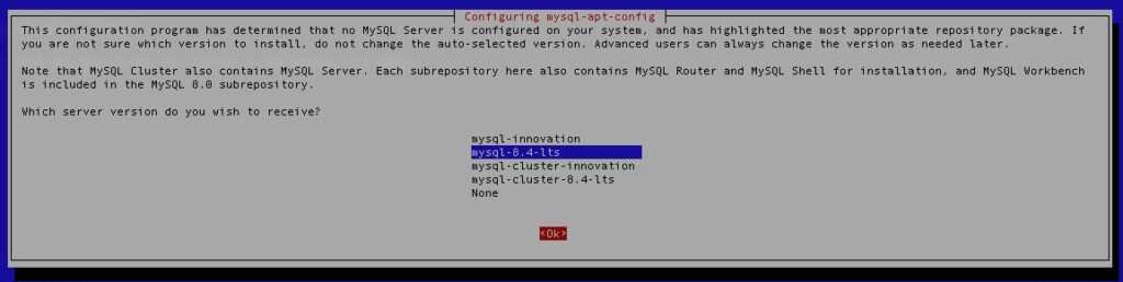 $ sudo apt install ./mysql-apt-config_0.8.36-1_all.deb
